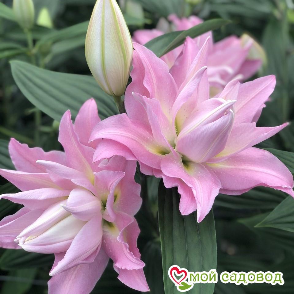 Огромный многоярусный цветок 20 см в диаметре с насыщенным сладким ароматом состоит из бесчисленных перламутровых лепестков. Фантастическая красавица будет встречать вас на парадной клумбе рядом с крыльцом, отлично впишется в пространство перед живой изгородью из хвойных или декоративных кустарников, между кустами пионов и роз. Посадка лилии: Глубина посадки лилии зависит от почвы. Если почва легкая – можно углубить на 12-13 см, что составляет 3-4 диаметра луковицы. Если же почва глинистая или тяжелая, достаточно двух диаметров, глубина лунки не более 5 см. В выкопанную ямку насыпьте слой песка, установите луковицу донышком на песок, присыпьте сверху остатками грунта, сверху замульчируйте. Уход за лилией: Пышных бутонов у лилий можно добиться, соблюдая обычные правила ухода: в первый год лилиям не нужна весенняя подкормка, удобрения вносятся разово за сезон, после цветения. Но это лишь в том случае, если перед посадкой вносилось удобрение. Перед началом цветения высокорослые сорта рекомендуется подвязать. После цветения засохшие бутоны удаляют. Полив умеренный: лучше не долить, чем перелить. Если цветок начал чахнуть и имеются подозрения на перелив – смешайте по столовой ложке речного песка и древесной золы, высыпьте под цветок и не поливайте ближайшую неделю. Полив лилии важно проводить под корень, старайтесь исключить попадание воды на листья, это провоцирует ожоги на солнце и распространение грибковых заболеваний.